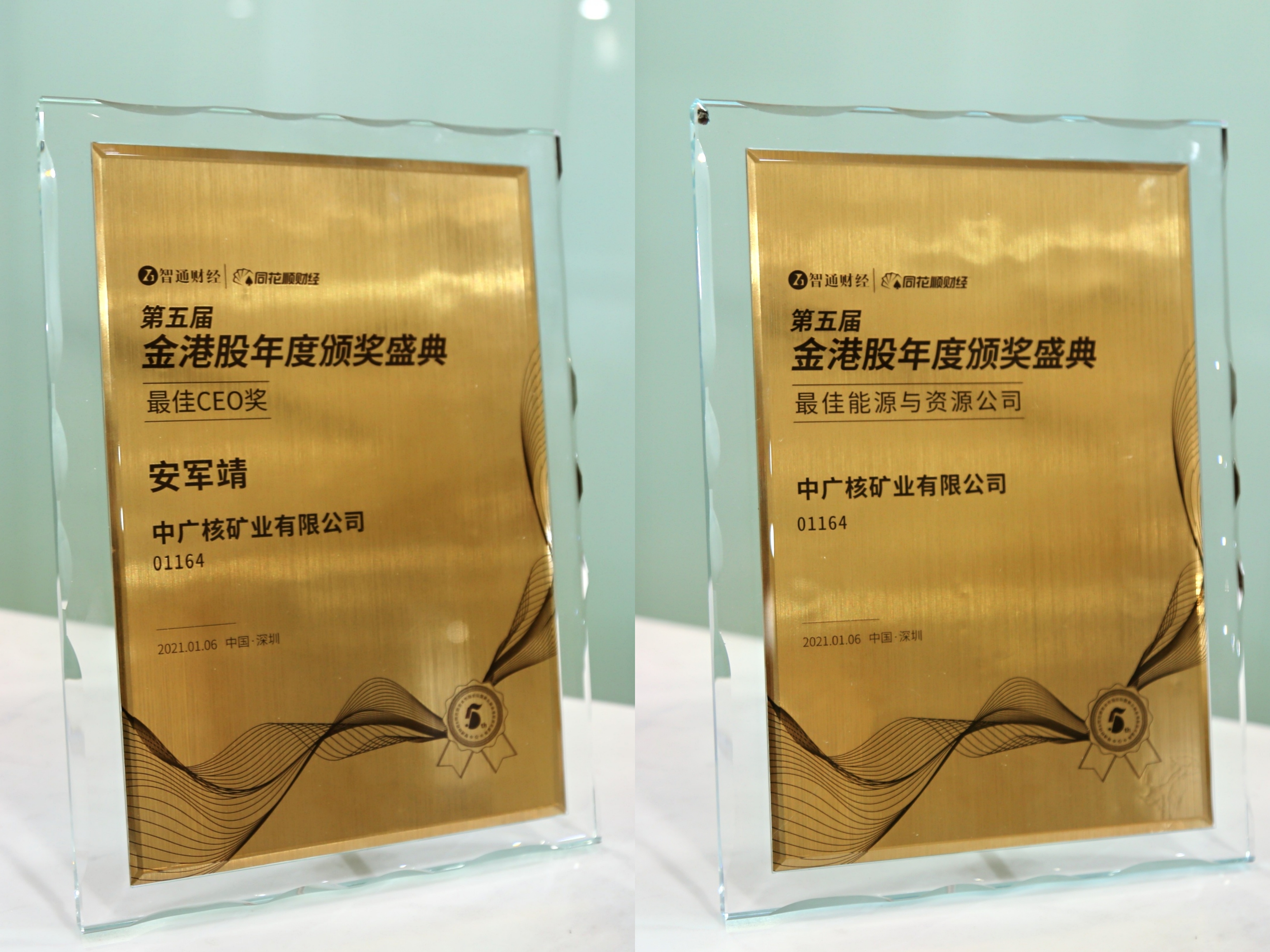 1月6日,第五屆“金港股年度頒獎(jiǎng)盛典”在深圳舉行,中廣核礦業(yè)(1164.HK)受邀出席,并獲評(píng)“最佳能源與資源公司”,中廣核礦業(yè)CEO安軍靖先生獲評(píng)“最佳CEO”。